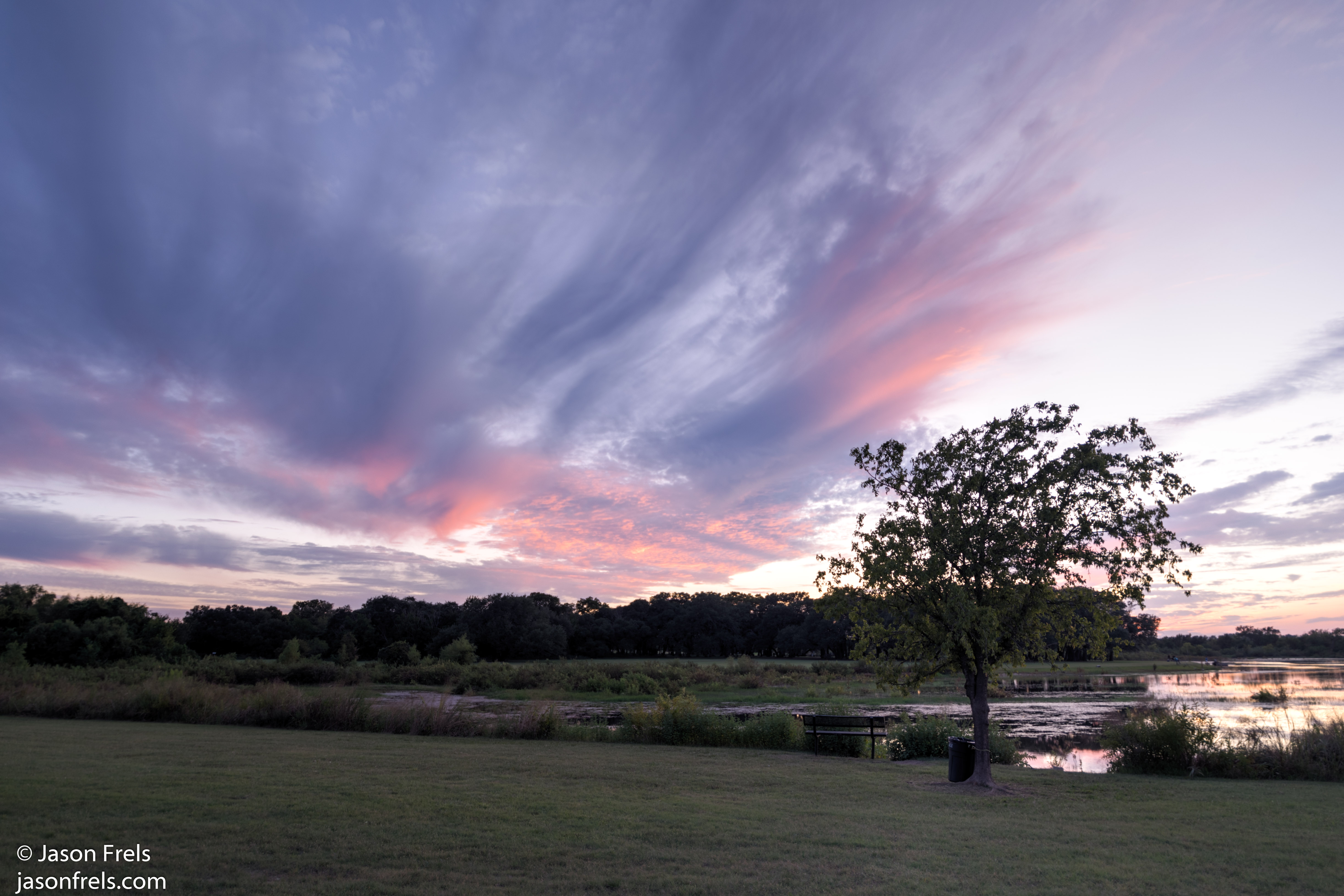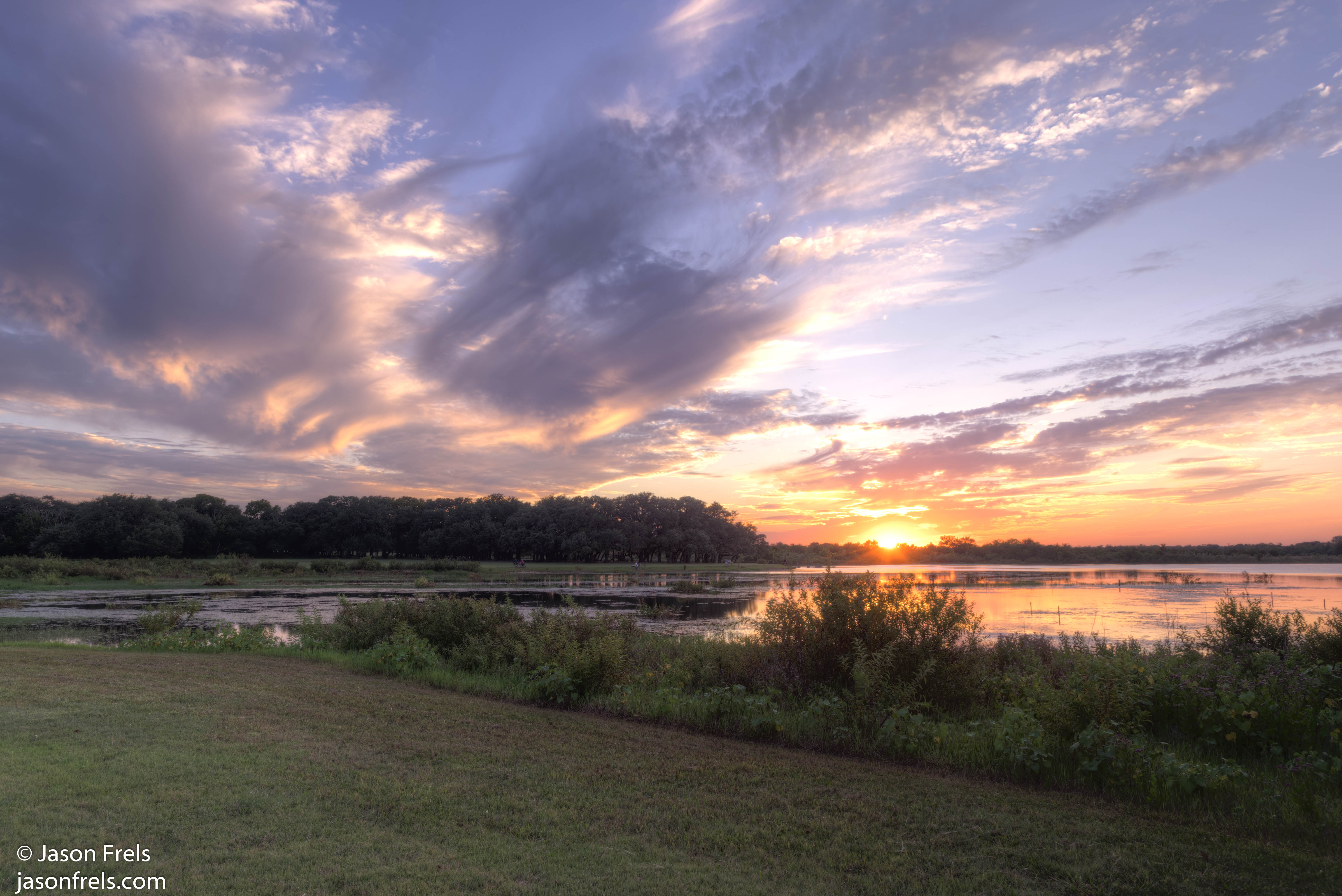 I noticed these purple flowers and got down kind of low to try to get them in the shot with the sunset. Turned out OK with the reflections in the pond, I think. As a bonus, I also got bit by a few dozen mosquitos while standing here.DSC_0027_28_29_30_31-2
