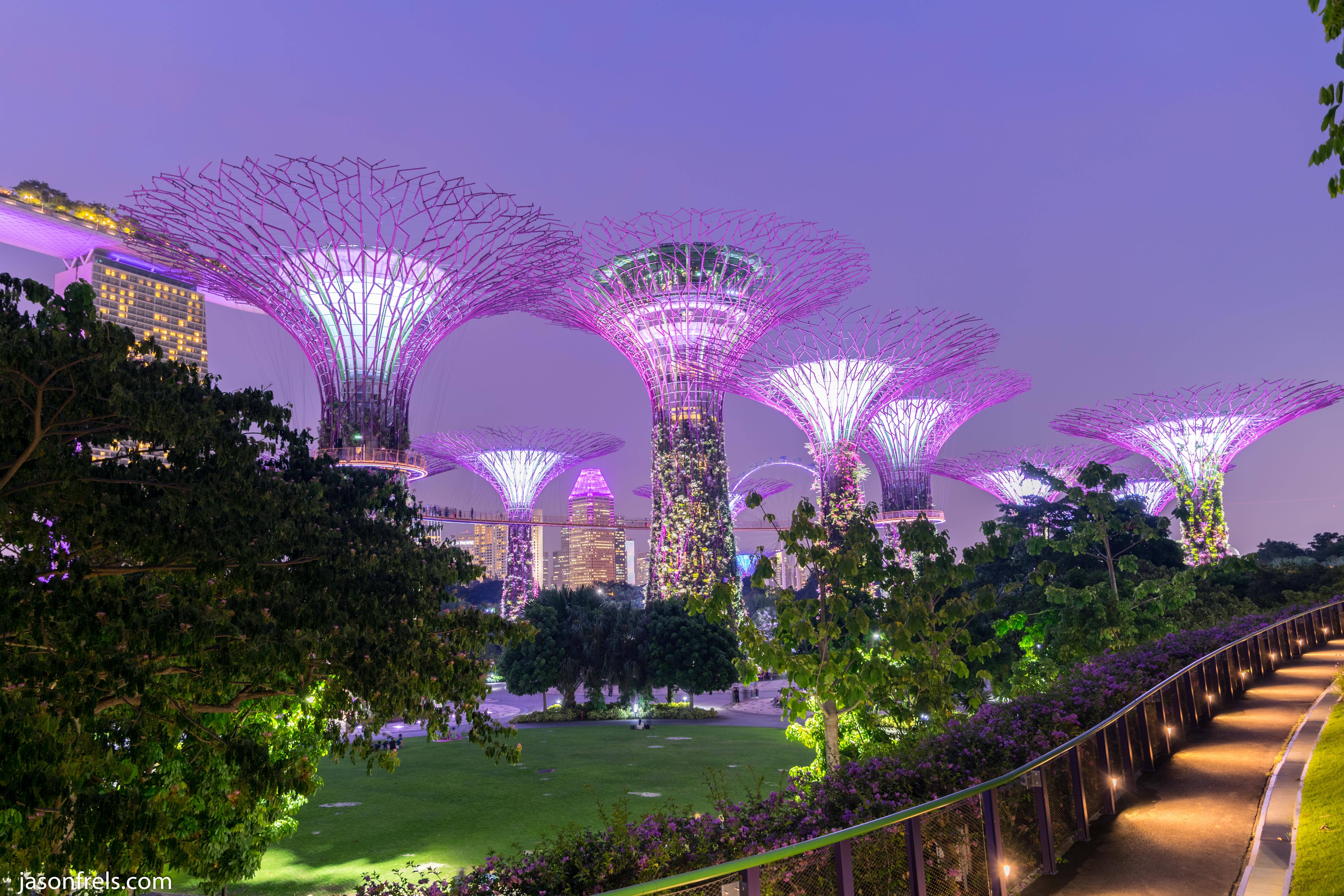 When I was in Singapore, I wanted to visit the Supertree Grove after sunset and try to get some HDR pictures of the trees all lit up. I hiked over to this area carrying my tripod. Along the way, I stopped at the flower dome and as it approached sunset, I walked around the Supertree Grove to scout out some good places for photos.