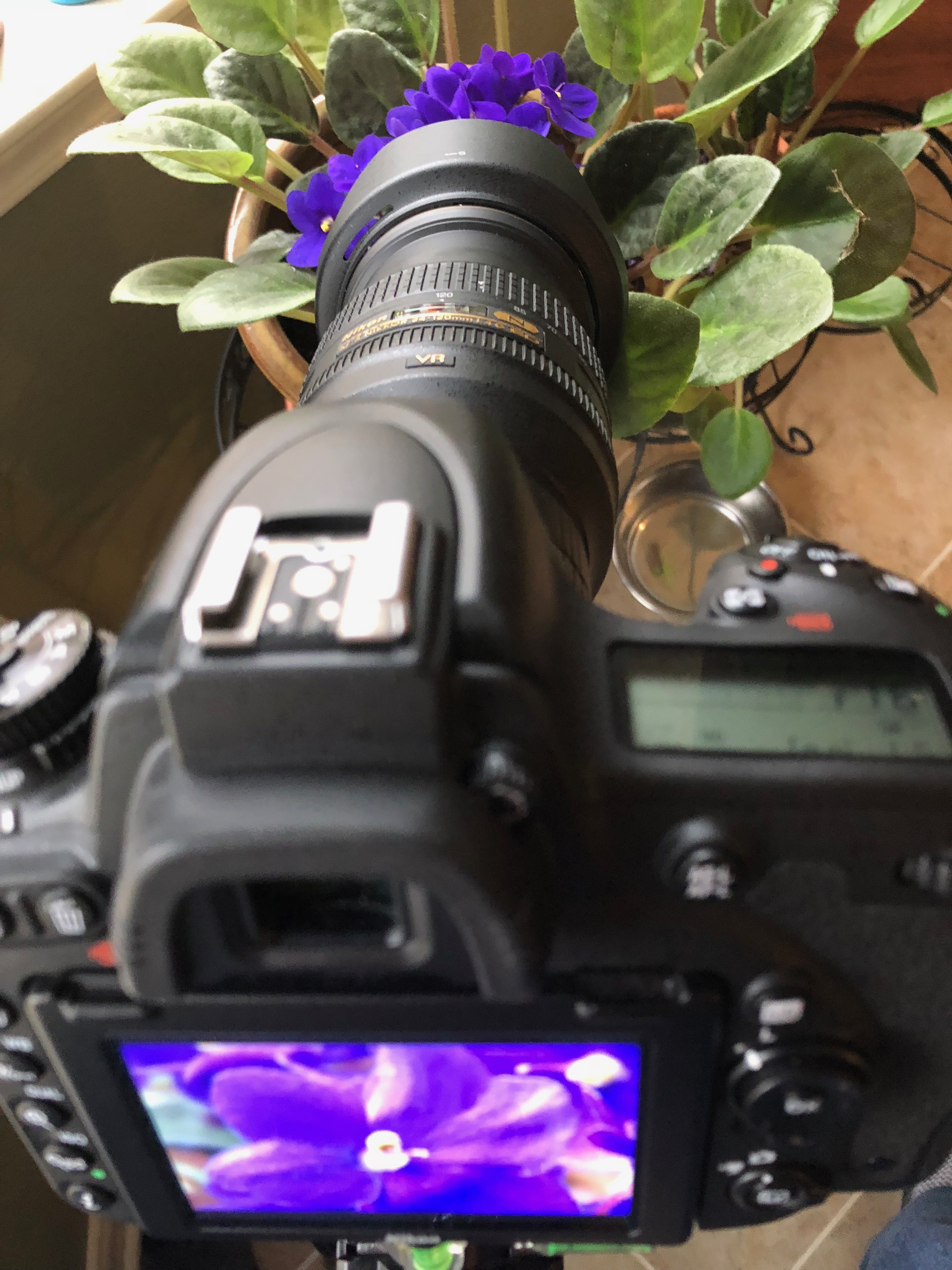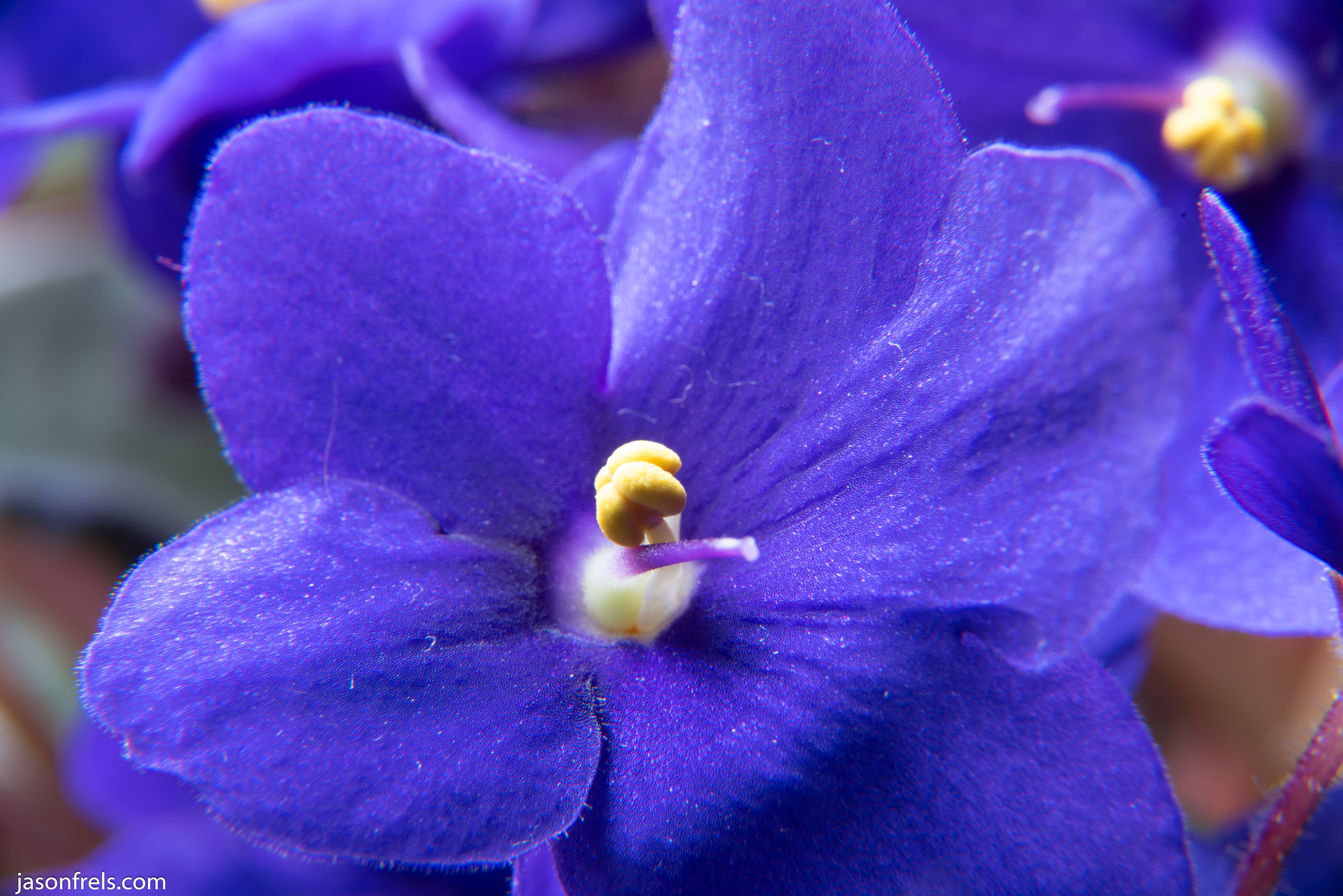 Another rainy day and I was itching to do something with my camera. I noticed that my girlfriend’s African violets were really blooming, so I decided get the extension tubes and do some close-up pictures.