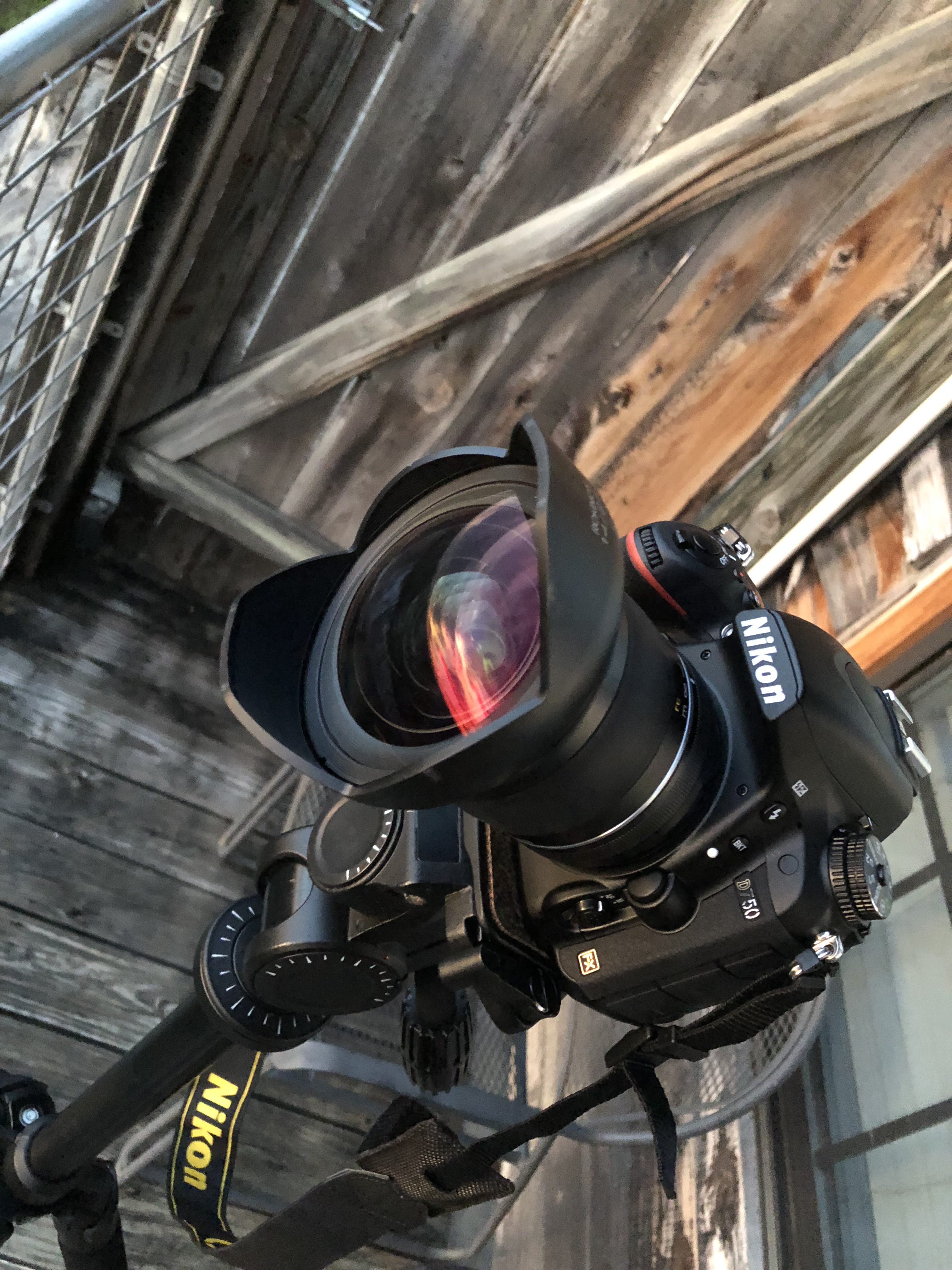 Picture of the sunset reflected in my Rokinon 14mm lens, taken with an iPhone8.