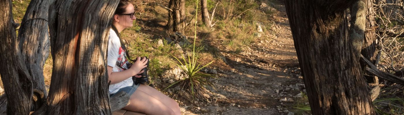 My teenage daughter often wants to hang around with me. How wonderful is that for a dad?!?!! Makes me feel like I have done something right for the last 17+ years. She is a fantastic girl, full of positivity and hope and I love her outlook on the world. I am a bit of a proud father, as you can see. Last weekend she wanted to go hiking and shooting photos with me – two of my favorite things. She drove us out to Balcones Canyonlands National Wildlife Refuge as it is close-by and I really like the place.