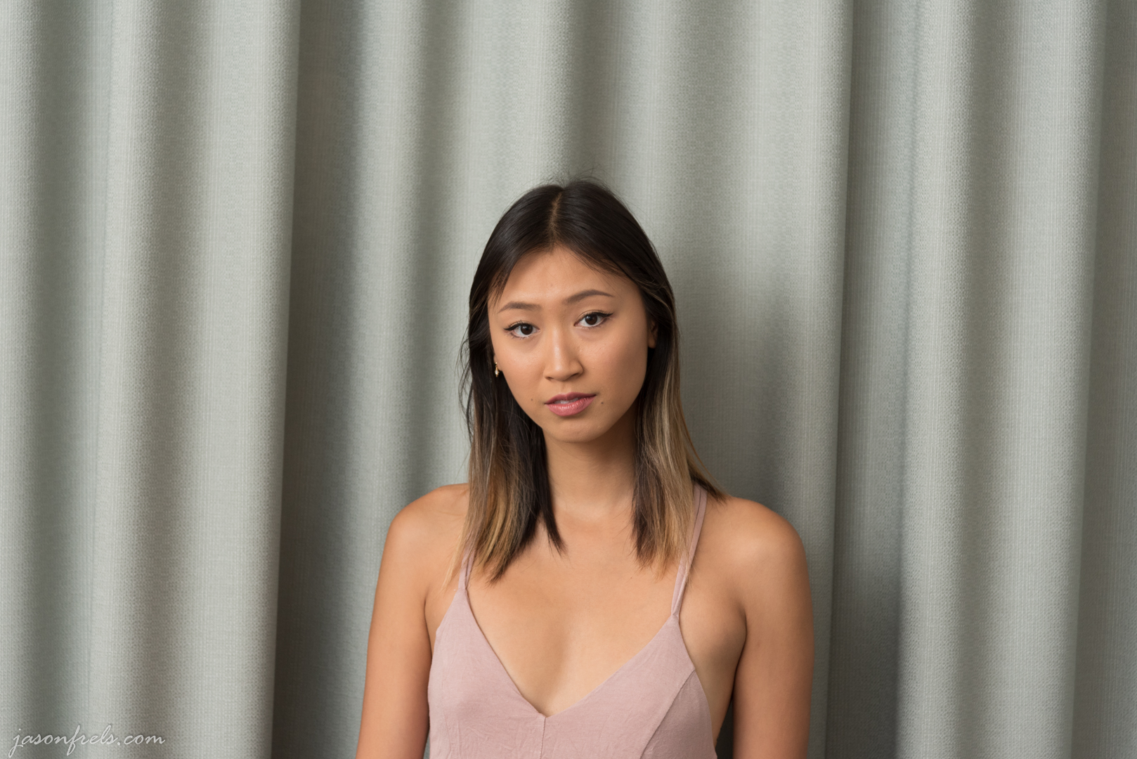 Just that simple adjustment made a huge improvement to the photo. There is depth and contrast and the model doesn’t look like she is being attacked by paparazzi with bright flashes. The same curtains behind her actually appear to have depth