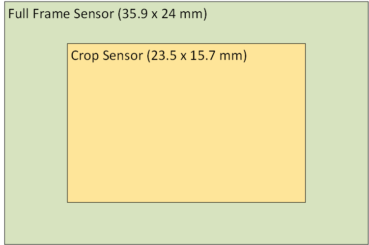 The Z50 is a mirrorless camera with a 20MP crop sensor. Mirrorless meaning that the view finder doesn’t look through the lens via a mirror that flips out of the way when you take a picture, but rather has a tiny electronic screen in the viewfinder. Crop sensor meaning that the sensor is a bit smaller than a full-frame sensor (see the comparison below). These two features can make the camera both smaller and lighter as there is not the bulk of area needed for a moving mirror and the camera has a physically smaller sensor. This also means that the lenses can be smaller.