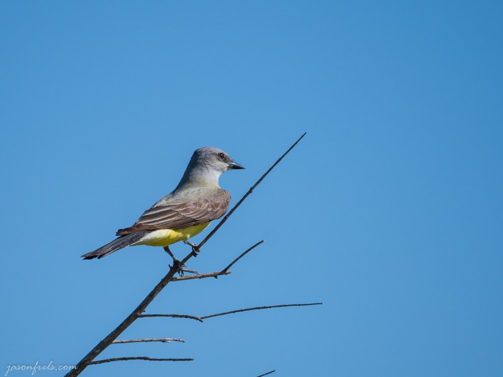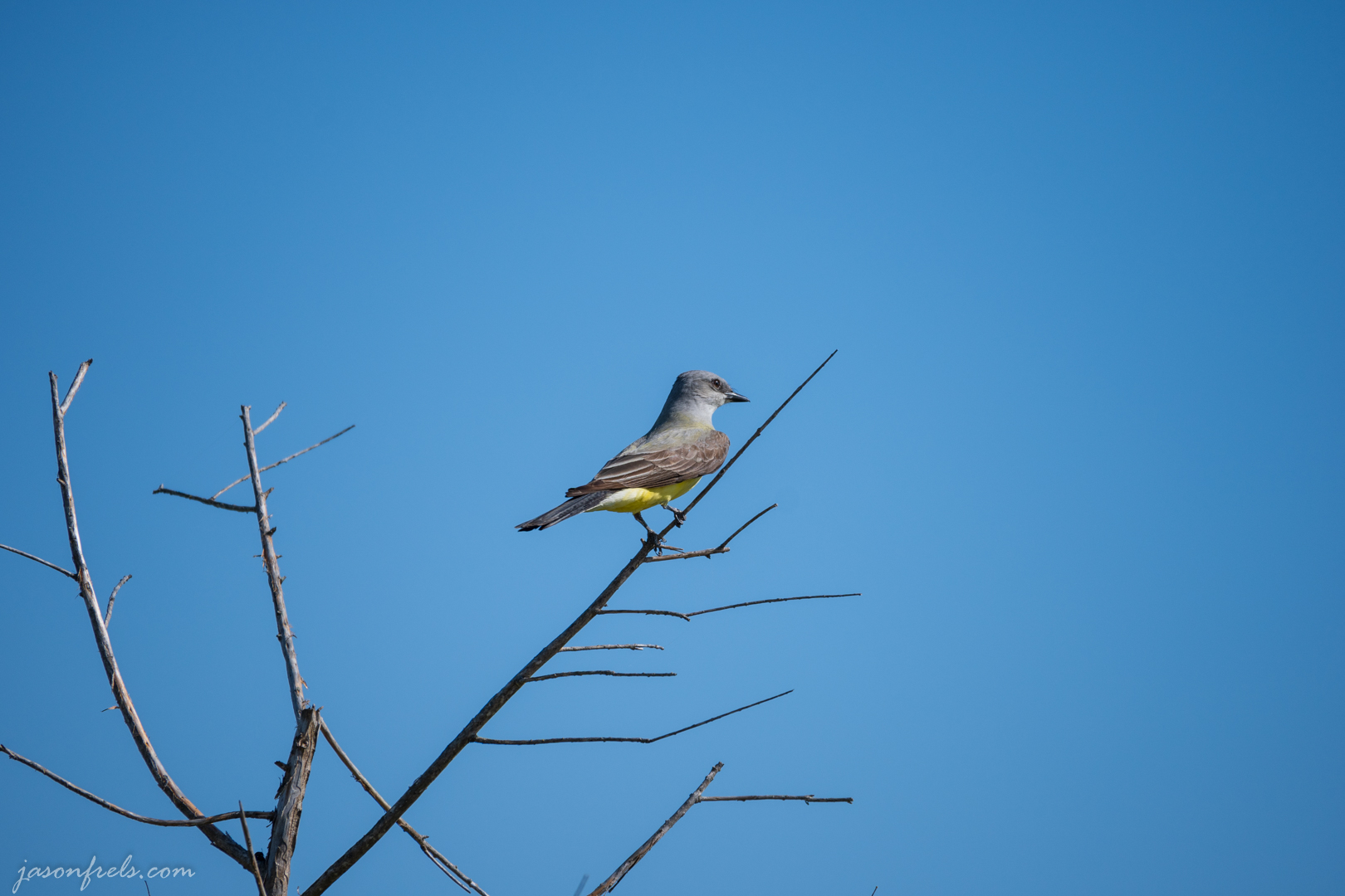 Below is a full image of a bird that I shot. I believe it is a Western Kingbird which is suppose to be common around these parts. I shot it at 250mm, f/6.3/ 1/1000s, ISO100.
