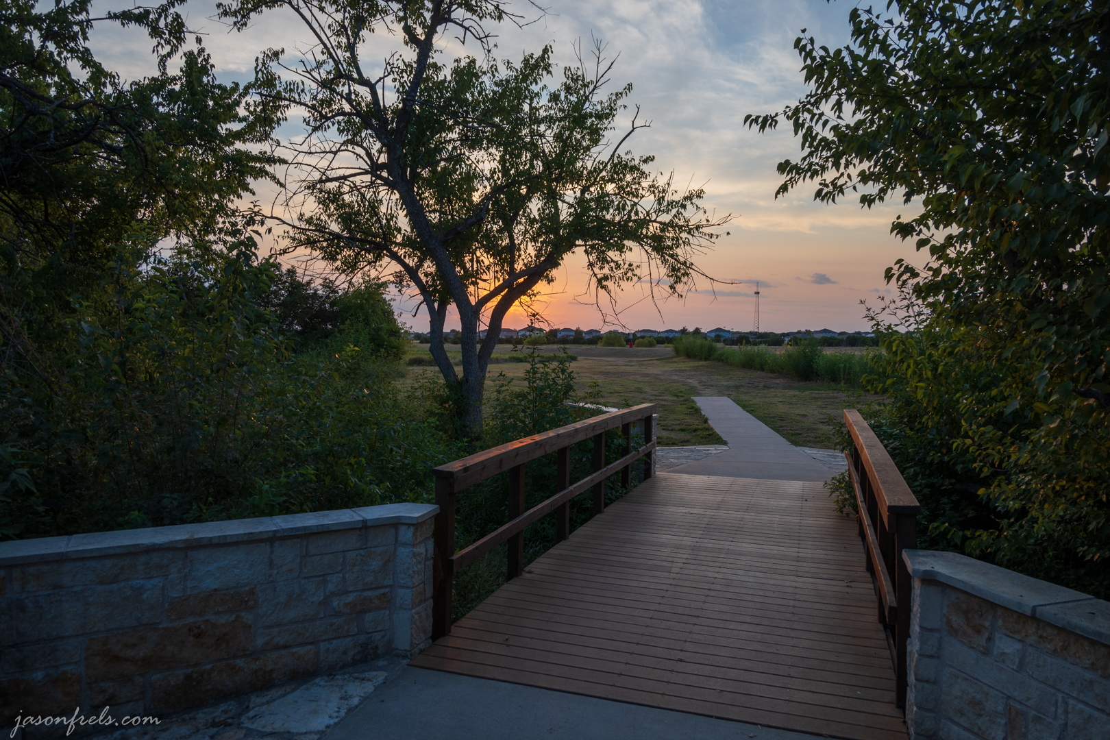 Not far from this, I scoped out a foot bridge for a possible sunset photo. The path (which leads to where the above rabbit was) almost points to the sunset and the color of the bridge might show up well with the sunset. If I shoot wide enough you won’t really notice all the distant houses. So, another place to keep in mind.