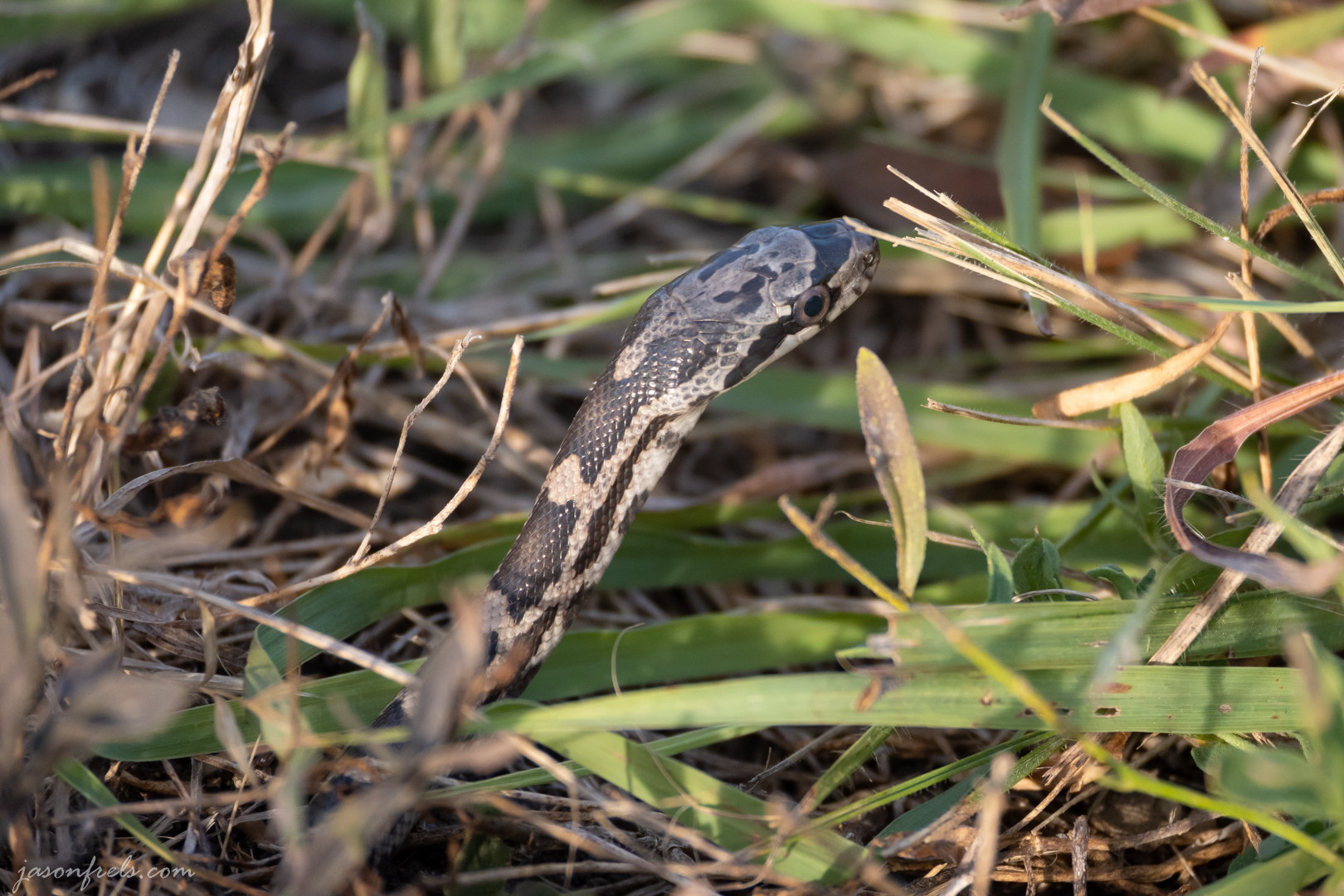 The little rat snake was quite scared of me and I had to kind of follow it along in the grass to try to get good photos of it. When these things get bigger, they can really scare people who think they are dangerous, but rat snakes are quite harmless to people. I also saw a much larger Blotched Watersnake but I could not get a good photo of it as it was very quickly getting away from me.