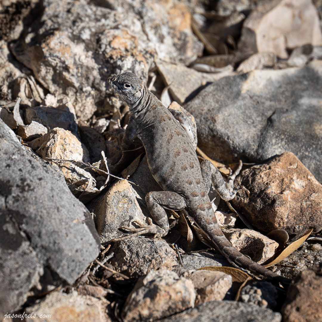 I also climbed up to the top of the ridge, mainly because that is the only place with phone service out there (on AT&T anyway). While up there I saw a lizard scurry, but didn’t see where it went. After staring for about 15 seconds, I finally saw the guy sitting there looking at me. He was very calm while I shot some photos of him. This is taken at 200mm and a crop of the final image and I wasn’t this close to the lizard. He was actually very hard to see amid the stones from where I stood. Effective camouflage.