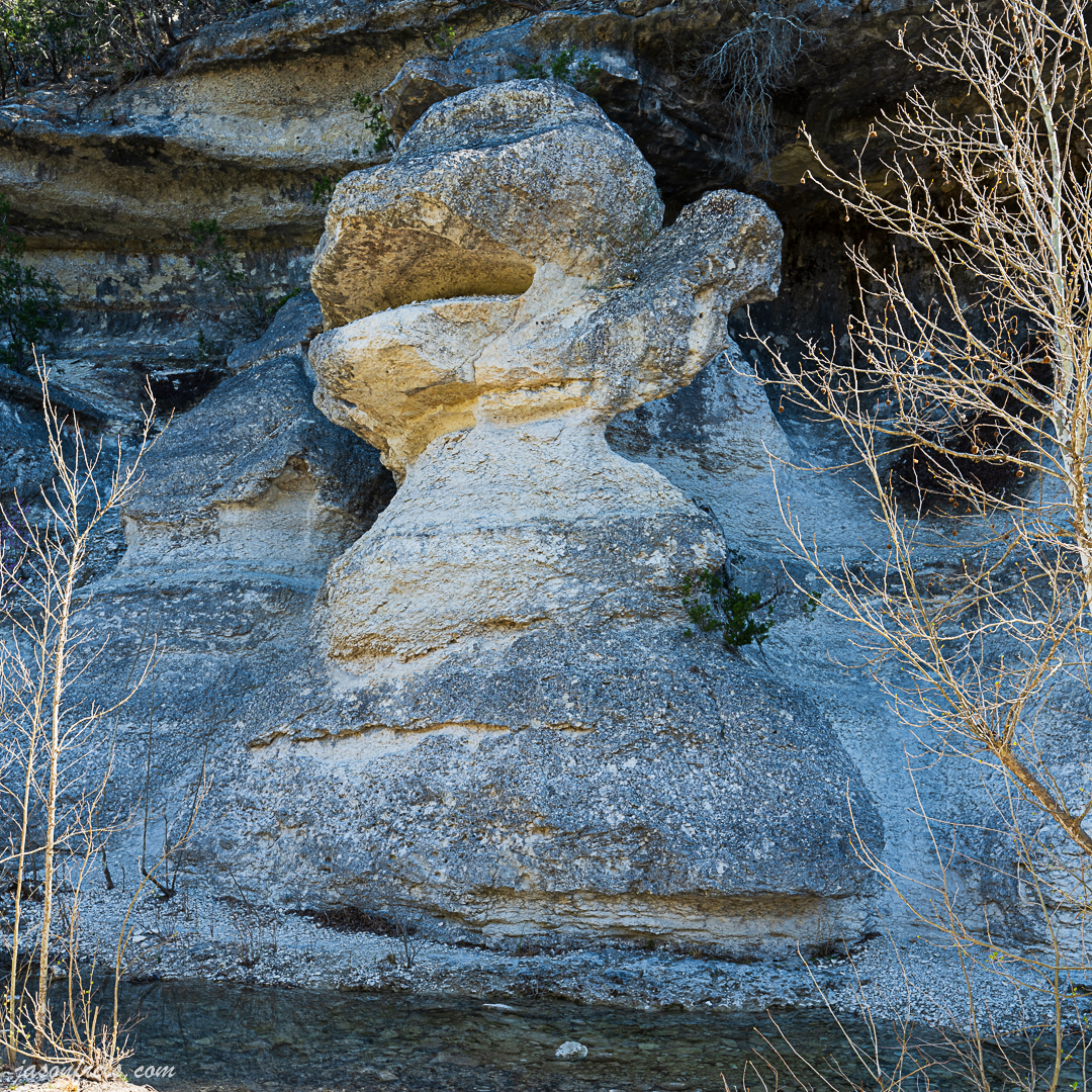 I did more than just shoot the stars at Lost Maples. I also did a bit of hiking on some trails that I had not previously been on. One of the trails passes by a feature called “Monkey Rock”. I have a photo of it below and you can see if you can figure out why it is called this.