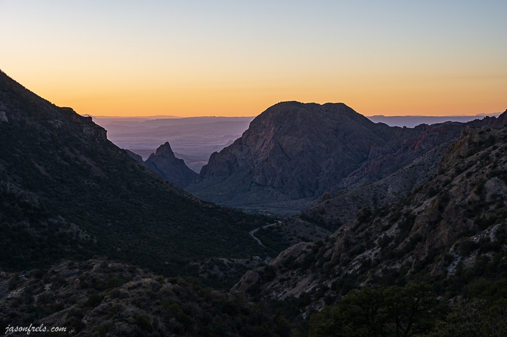 Climbing up past this tree, you can see through a gap in the mountains to the towering cliffs of the Sierra del Carmen in Mexico. The distant cliffs are about 25 miles away and are a beautiful sight to see in the southeast part of the park. As the sun begins to set, they take on an almost pink glow. The Photopills app showed that the sun would be rising behind this gap in the morning should I wish to hike up before dawn (I didn’t).