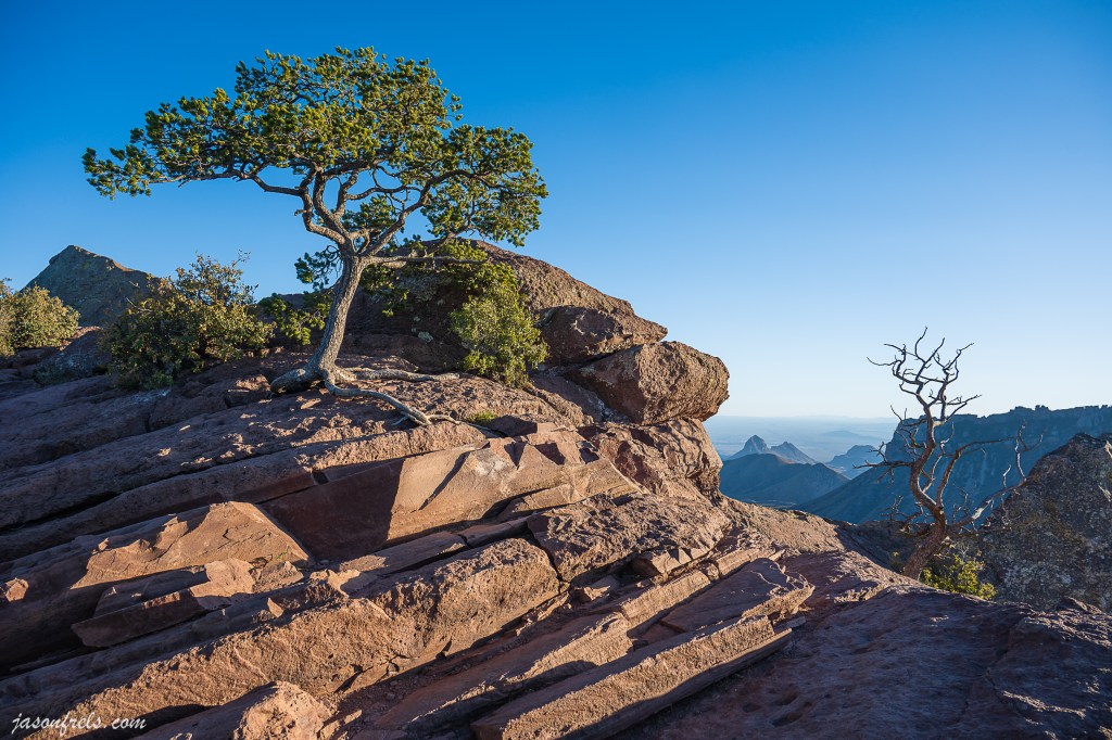 Tree clinging to the high cliffs on the Lost Mine Trail at Big Bend National Park