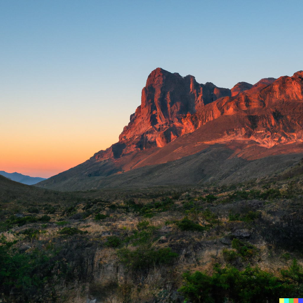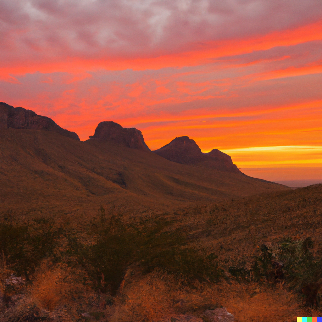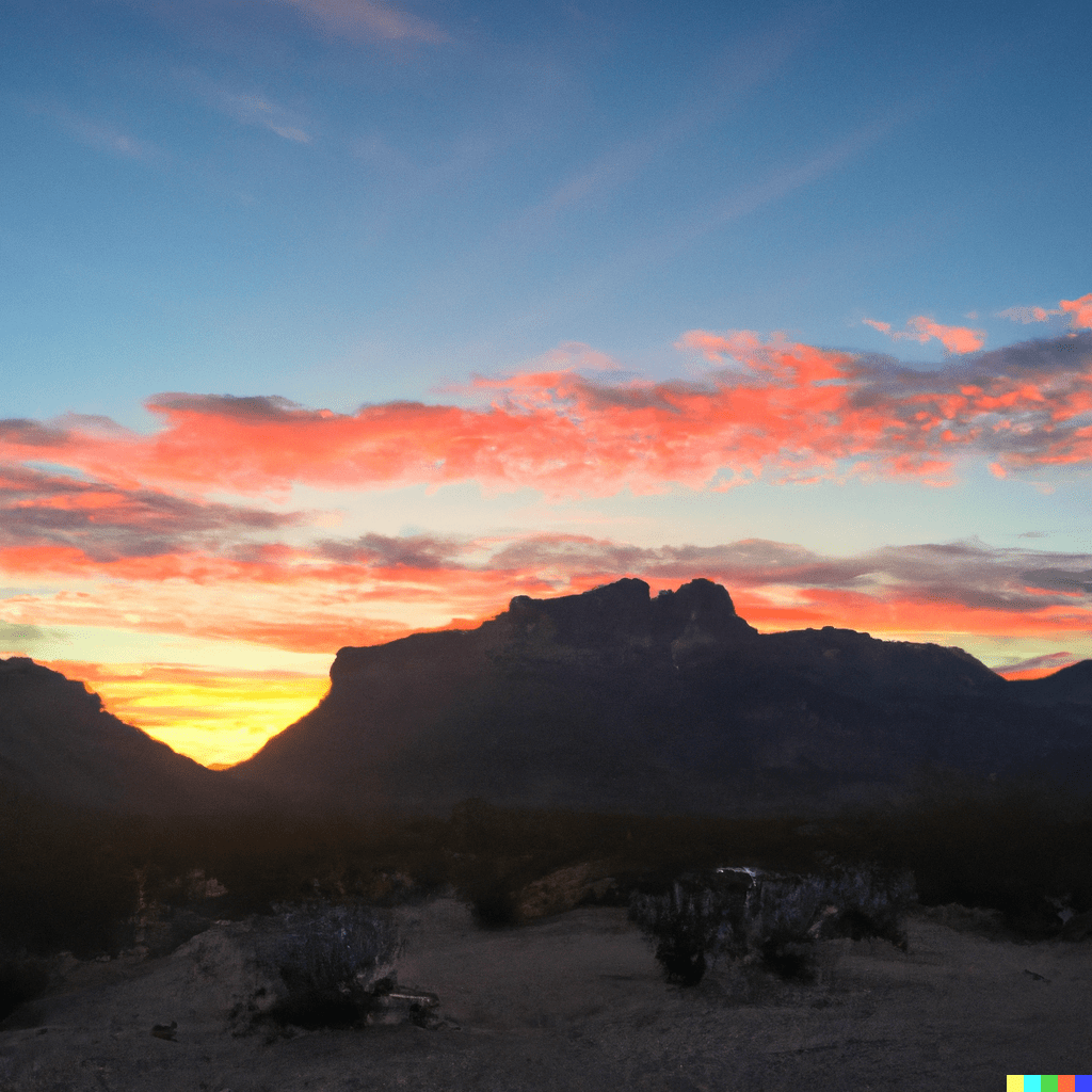 One famous AI image generator is DALL-E by an organization called OpenAI. Their description of the product is “DALL·E 2 can create original, realistic images and art from a text description. It can combine concepts, attributes, and styles.” Sounds cool! So, I signed up for an account to have a little fun with another blog I was reading and after seeing some results, it occurred to me to see if DALL-E 2 could best me at a photo of a sunrise in Big Bend. This should not be a particularly tough task for this AI as I don’t think I got great sunrise photos at Big Bend on my last outing.