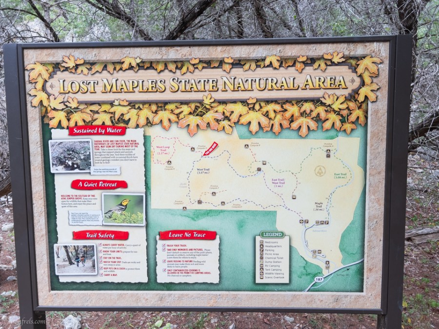 I decided that from here, I would take a nice long hike and make a loop before heading back home. I ended up hiking up the East-West trail and out to the West Loop trail and back; about 7.7 rocky miles total with a bit of a climb at the loop. Below is a park sign about halfway out.