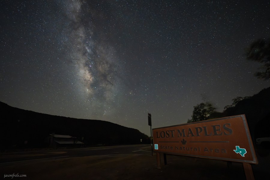 Saturday evening, August 12, there was a night sky event at Lost Maple State Natural Area west of San Antonio. Lost Maples is a rather remote park and thus has little light pollution at night and is a wonderful place to view the night sky. And, there was much to enjoy in the night sky on this evening as the Milky Way is near its prominence in the northern hemisphere in August and the Perseids meteor shower was at its peak; that combined with a moonless sky made it the best night of the summer to view the night sky. It was a clear and warm summer evening and after twilight ended at around 10:00PM, the sky was filled with stars in a way that can’t be seen in the city.