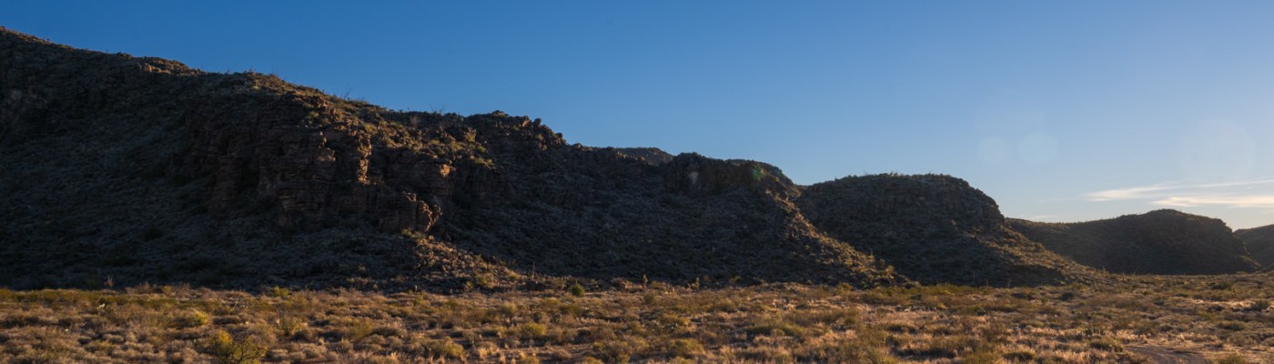 The campsite was everything I had hoped for. It is well secluded between the cliffs and hills in desert wilderness. There is another campsite in this area but it is on the other side of a large hill from this one, at least 0.75 miles away as the crow flies. The campsite provides a picnic table, a fire pit and a place to pitch a tent or two. There is no water or toilet nearby, so you have to pack in your own water and are required to bring in a sanitary camping toilet which you can buy at the visitor’s center. At night there is no light pollution and the stars are as bright as they can be, though I had a full moon for this night to dominate the sky. Below is a photo I took of the campsite the following morning. There is an old stock tank nearby so I suppose this was a stock watering area when this was a ranch decades ago.