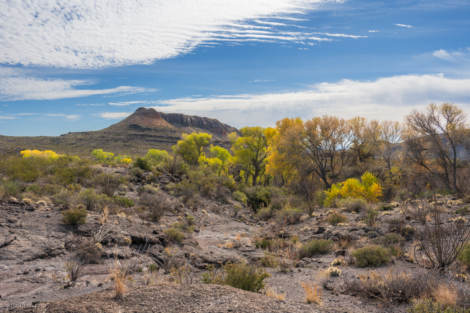 Near the beginning of the trail there was a creek bed with trees growing in it. It made a stripe of trees growing through the desert and I thought it was neat looking. I hiked around trying to see if I could find the spring or creek that was watering these trees, but I didn’t see it. Some nice fall winter color in the middle of the desert anyway.