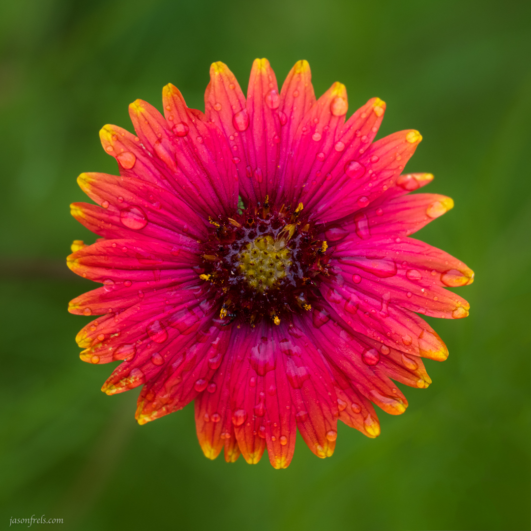 There were so many wildflowers, butterflies, moths, caterpillars on the trail that I mounted the long-lens and spent quite a bit of time making close-ups of what I saw. Below is my favorite: a full firewheel coated with raindrops. How could a butterfly be expected to resist such a target?