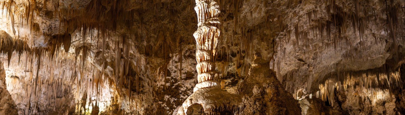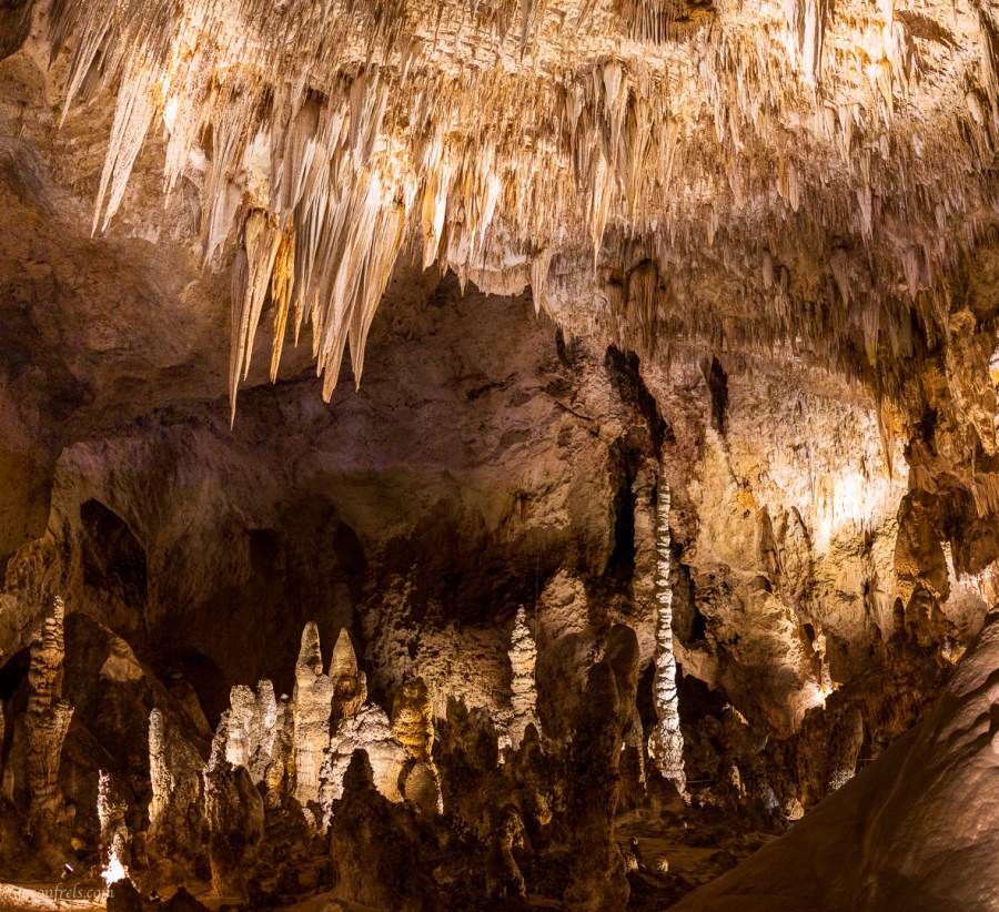 After the cave formation process was complete a million years ago or so, water seeped down through the rock and dripped into the cave. As the water emerges into the cave, each drop gives up a tiny amount of minerals that it had dissolved, leaving the minerals behind to form stalactites and stalagmites. Some of the stalactites and stalagmites meet and form columns. Carlsbad Caverns is full of these formations and this makes the cave an interesting place to tour.