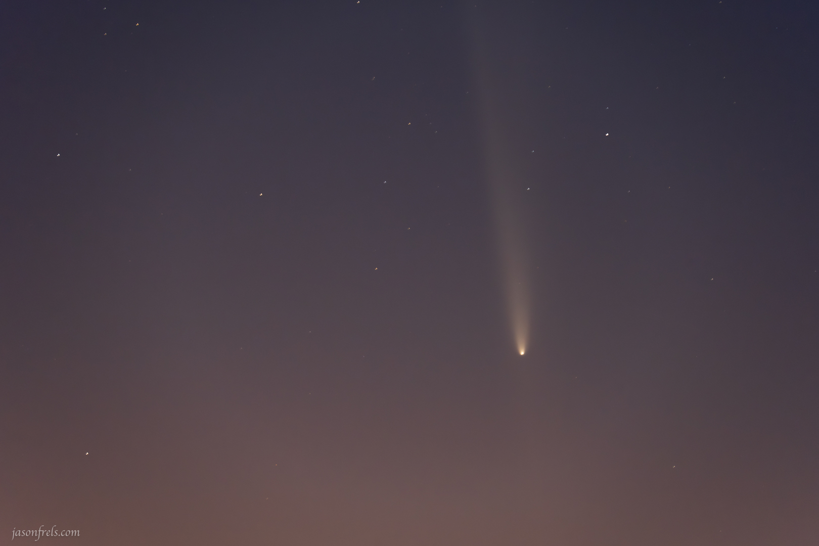 2. Very cool! The last comet I saw with any clarity was Comet West… when I was 5-years old. My dad woke me up at about 4-AM and carried me outside and let the cold air to wake me up. I might give this a try tonight. We’ve had a front move through over the last couple of days, and a super-moon that was peeking through the breaks like a streetlight last night. But it should be clear tonight. I don’t have any long lenses, however. What was the focal length?