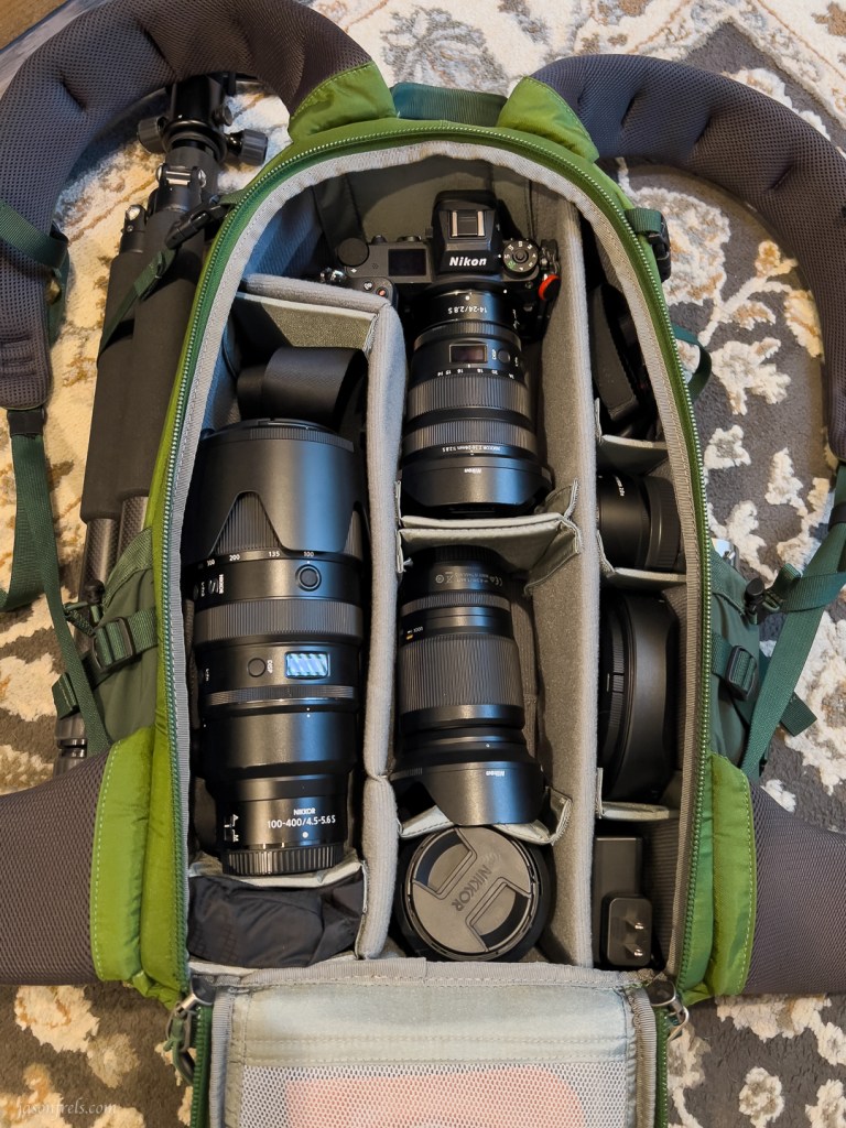 Yes, I often leave a few things out of the pack, but I wanted the weight on this day. I ordinarily would have left out that 100-400mm as it is heavy, but left it in for the weight.