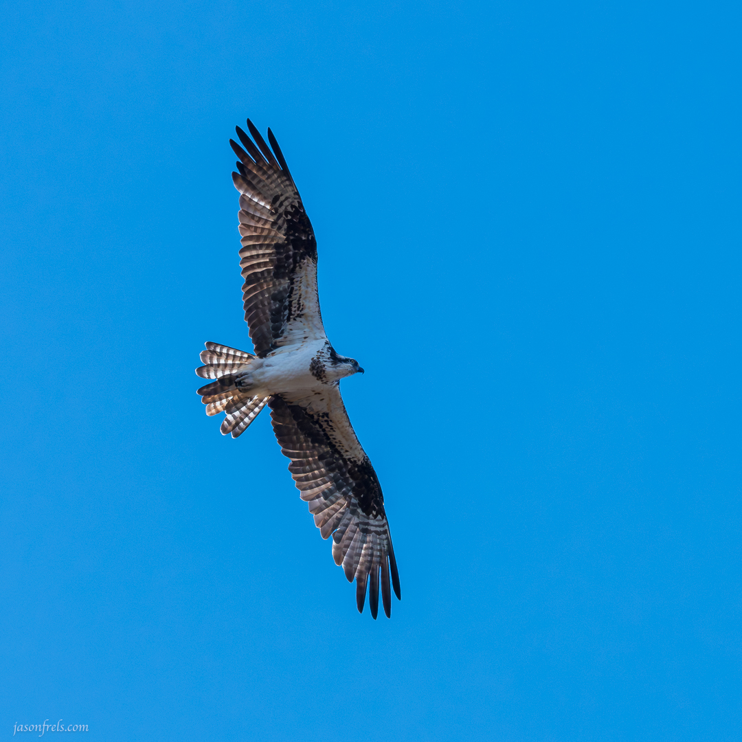 Another tool that you can use to counteract the noise from shooting at high ISO is use noise reduction and sharpening tools on your images when you process them. You can take images that have lost a little sharpness and gained a little noise from the higher ISO setting and the tools are generally good at finding edges and figuring out what is and isn’t noise. The osprey in the photo below was sharpened up a bit in Lightroom and then processed with the noise reduction tool and I think it turned out well. The darker areas on the underside of the wing have a lot of good detail. It was also nice that this osprey circled above my head several dozen times to give me practice tracking and shooting it.