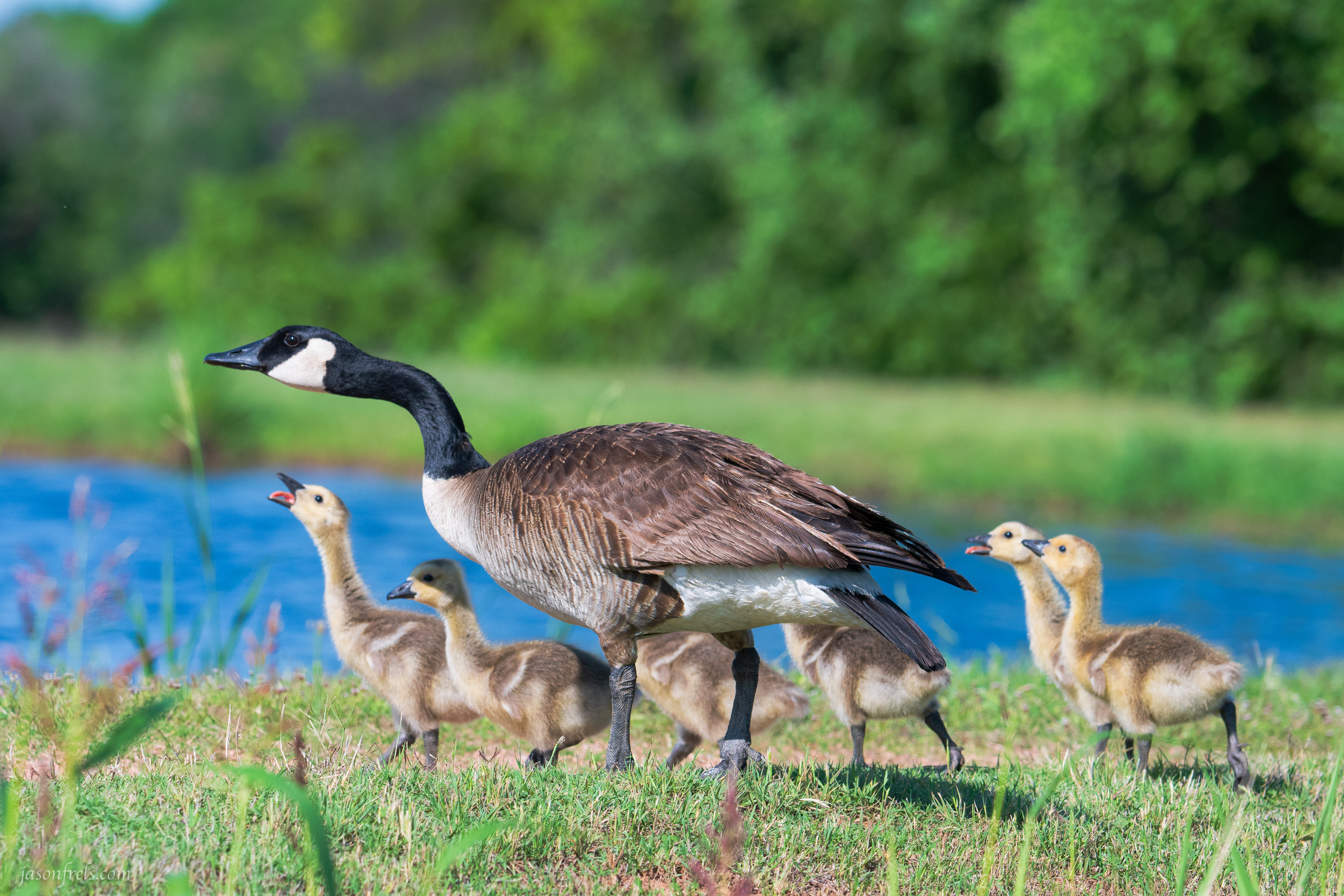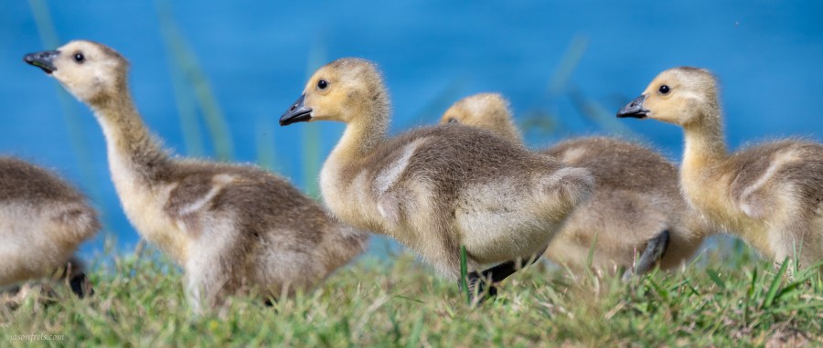 Who doesn’t like ducklings and goslings? I’d be hard pressed to choose between the two photos showing the youngsters. I like the capture of the open-billed little one practicing its honking, but that line of them is equally fun.